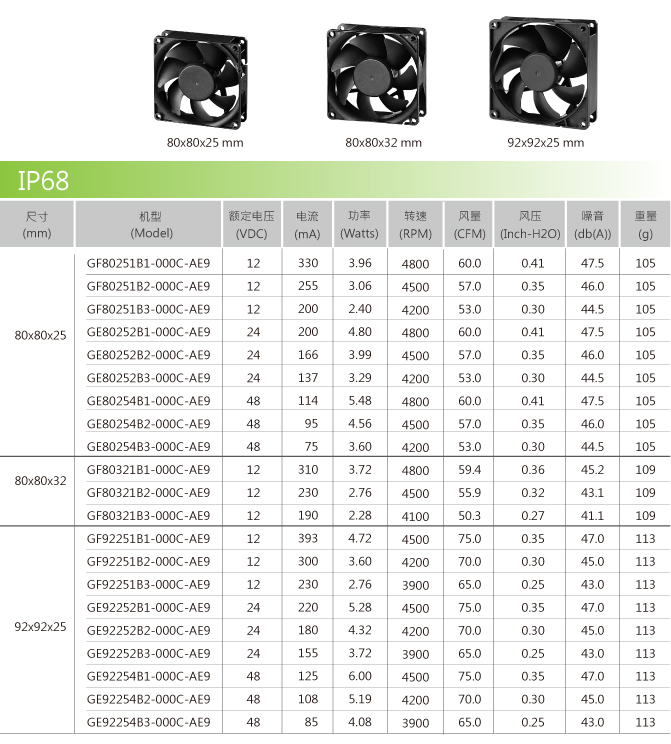 IP68 防塵防水風扇系列